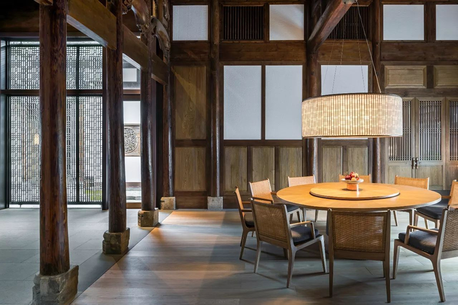 上海养云安缦江湖传闻已久,10,000棵古樟树和50座明清住宅跨越700公里从中国东部的江西省运到上海,能工巧匠以50座古建筑零件重新搭建出26座古宅。